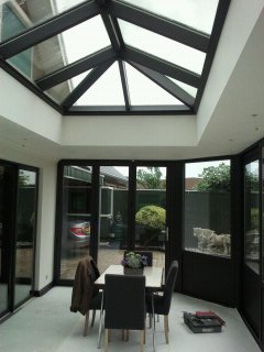 De aluminium profielen zijn thermisch onderbroken (geen condensvorming op de profielen in huis).
