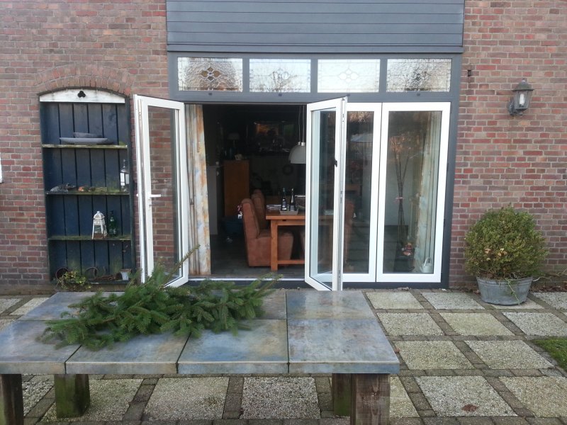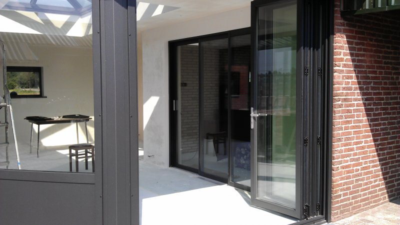 De aluminium profielen zijn thermisch onderbroken (geen condensvorming op de profielen in huis).
